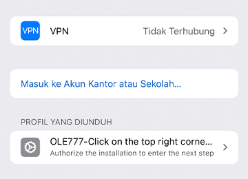 Pilih "OLE777 --[Click to install]" di bawah profil yang diunduh.